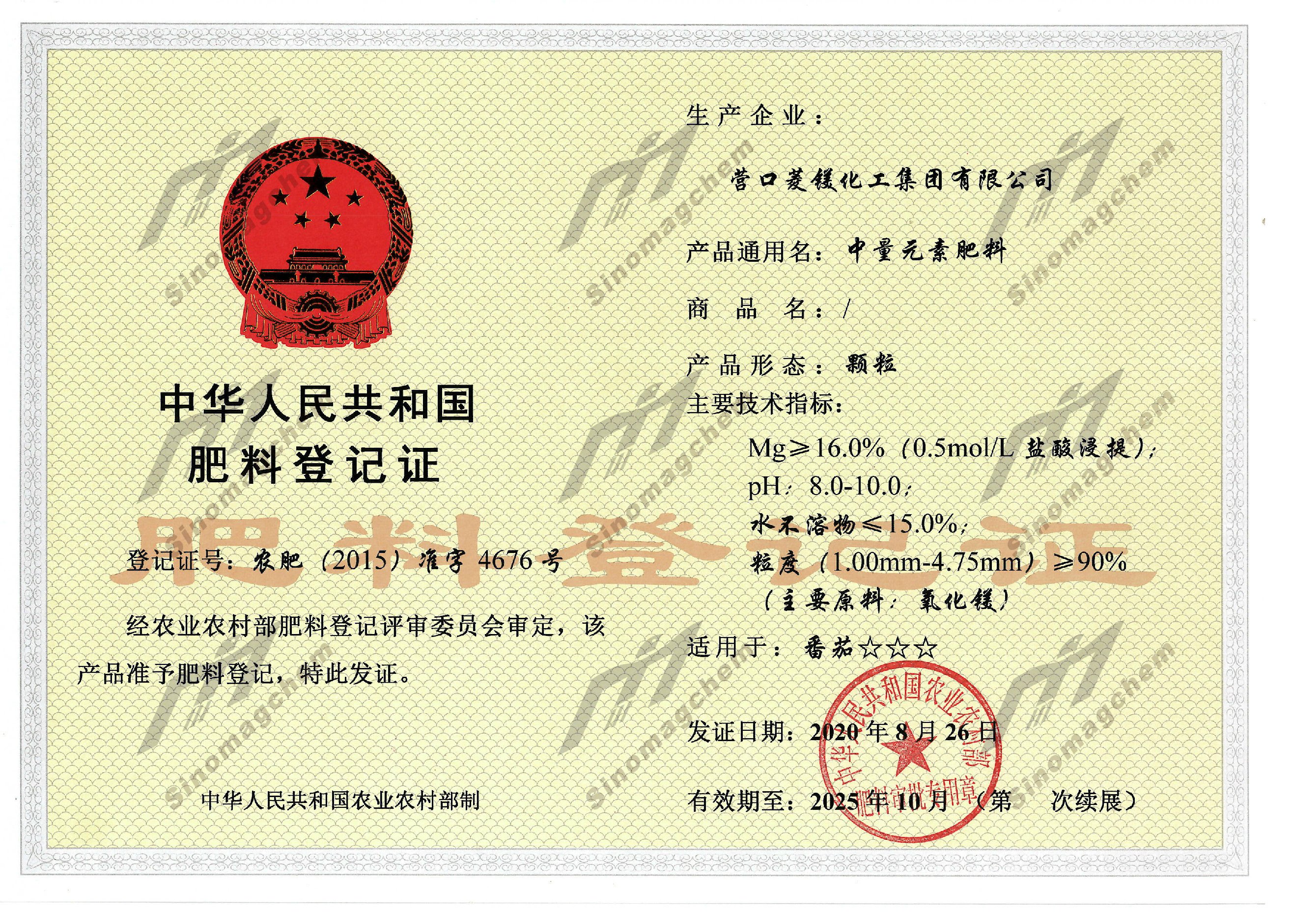 肥料登記證(顆粒)